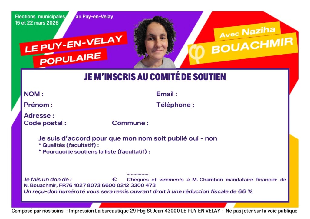 Contactez nous pour vous investir dans la campagne des élections municipales au Puy-en-Velay du 15 & 22 mars 2026