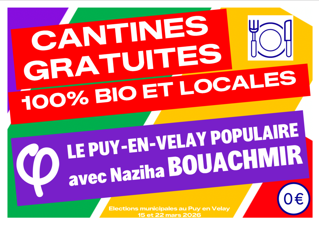 Selon une étude, actuellement seulement  5,5 % de la nourriture dans les cantines du Puy-en-Velay est bio (association agir pour l’environnement) alors que la loi impose au moins 20 % de bio. Pour nous à la France Insoumise il faut aller bien plus loin.